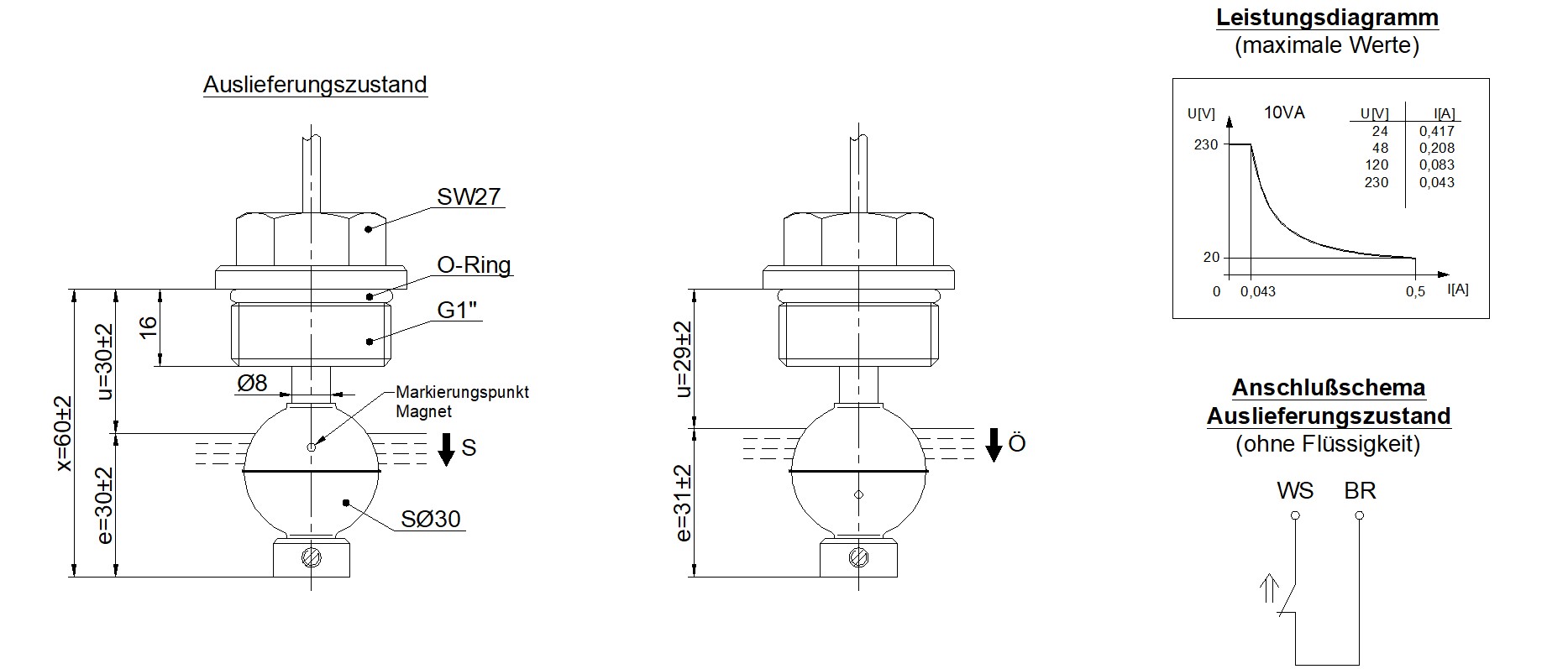 Dieser Miniatur-Schwimmerschalter mit 8 mm Schaltrohr wurde für industrielle Anwendungen konzipiert, in denen eine hohe Materialbeständigkeit und eine einfache Außenmontage erforderlich sind. Das Gehäuse aus Edelstahl 1.4571 und der Schwimmer aus 1.4301 ermöglichen den zuverlässigen Einsatz in anspruchsvollen Medien und unter erhöhtem Druck. Die bewährte Reed-Technik arbeitet ohne Dauerstrom und bietet eine präzise, langlebige Grenzstandserfassung. Die vertikale Installation erfolgt über ein robustes G1 Außengewinde, das eine stabile, dichte Montage von außen ermöglicht, während das PVC-Anschlusskabel eine flexible Integration in bestehende Anlagen sicherstellt.
