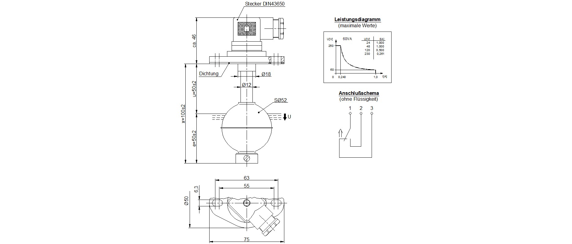 Dieser Standard-Schwimmerschalter mit Ø12 mm Schaltrohr ist für Anwendungen ausgelegt, bei denen hohe mechanische Belastbarkeit und korrosionsbeständige Werkstoffe erforderlich sind. Gehäuse und Schwimmer bestehen vollständig aus Edelstahl 1.4571, wodurch der Sensor zuverlässig in industriellen und druckbelasteten Flüssigkeiten betrieben werden kann. Die bewährte Reed-Technik arbeitet ohne Dauerstrom und ermöglicht eine langlebige, präzise Grenzstandserfassung. Die vertikale Installation erfolgt über einen 75-mm-Ovalflansch von außen, während der genormte DIN-43650-Stecker eine sichere und schnelle elektrische Verbindung bietet.